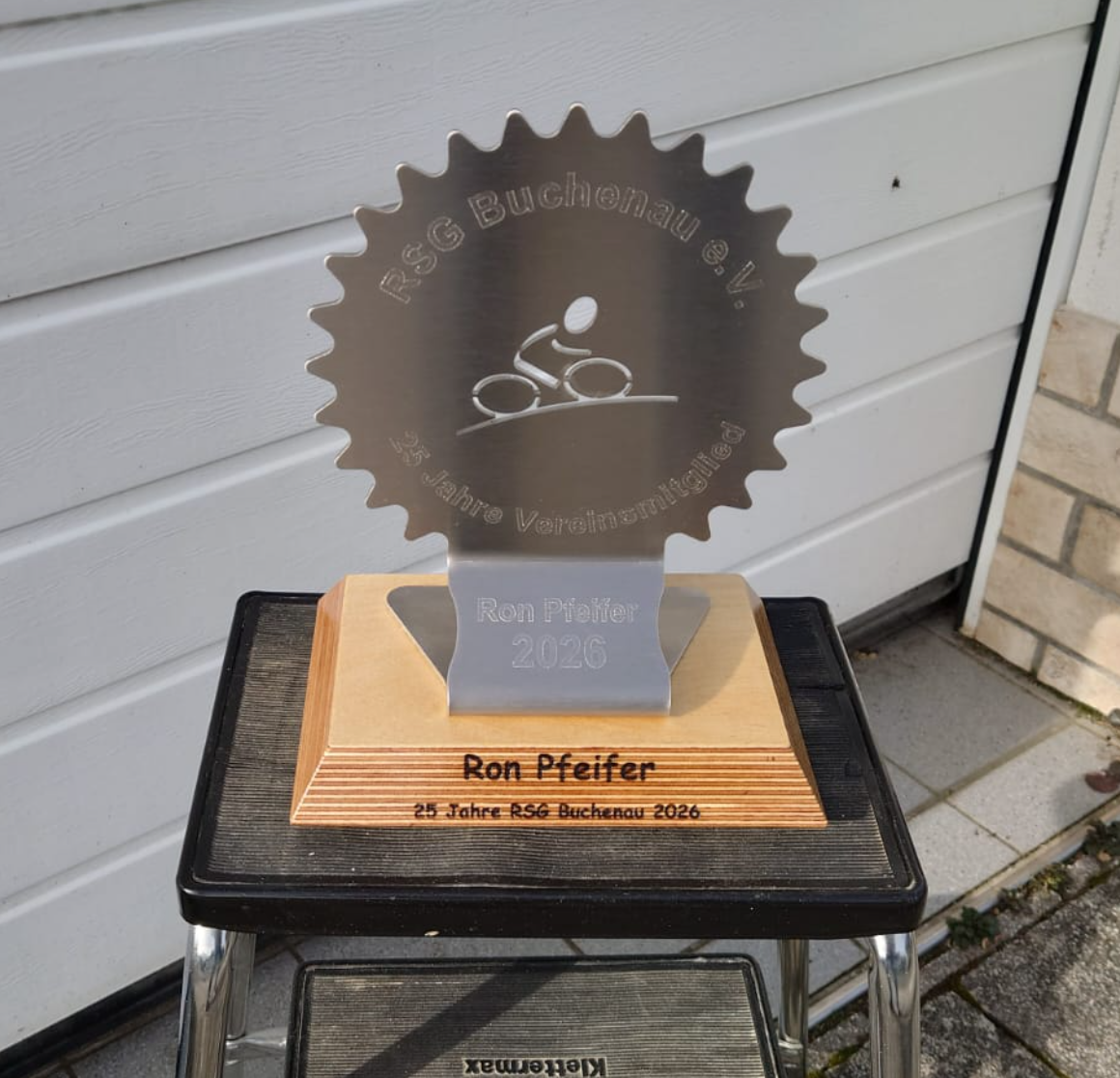 Im Rahmen der Jahreshauptversammlung wurde am 07.03.2026 unser langjähriges Mitglied, Ron Pfeifer, für 25 Jahre Vereinsmitgliedschaft geehrt. Sein Bruder, Kevin Pfeifer uns 2. Vorsitzender des Vereins, überreichte Ron einen weiteren Pokal, welcher nun Platz in seinem Zuhause findet.