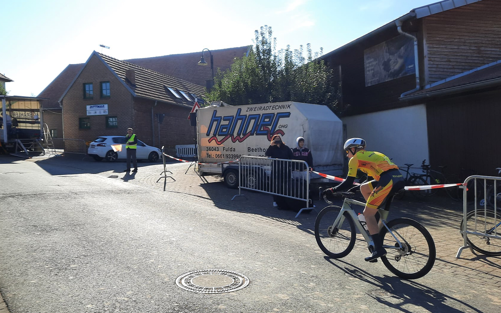 In seinem ersten Jahr auf dem Rennrad bei uns hat Alexander Götz direkt seinen ersten großen Erfolg feiern können. Am Sonntag, den 10.10.2021 wurde er in Fulda bei der Landesverbandsmeisterschaft, ausgetragen von den Landesverbänden Hessen, Rheinland-Pfalz und dem Saarland grandioser erster aus Hessen. Im finalen Zielsprint musste er sich lediglich Jannis Rapp aus dem Landesverband Rheinland-Pfalz geschlagen geben. Im Rennen zeigte sich Götz immer wieder Vorne. Ausgetragen wurde das Rennen der U17 gemeinsam mit der Rennklasse der U19. Bei der Tempoarbeit beteiligte Götz sich trotz seiner jüngeren Altersklasse und wurde damit am Ende belohnt. Ausrichter der Meisterschaft war der RSV Froh Fulda.